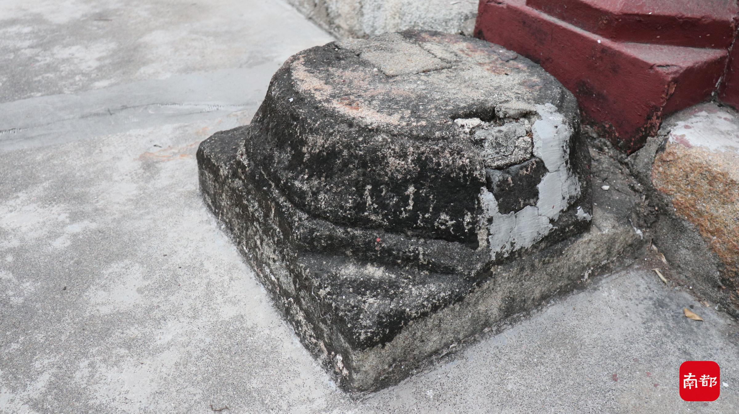 钟鼓楼二楼南面廊外废弃的明代石柱础。