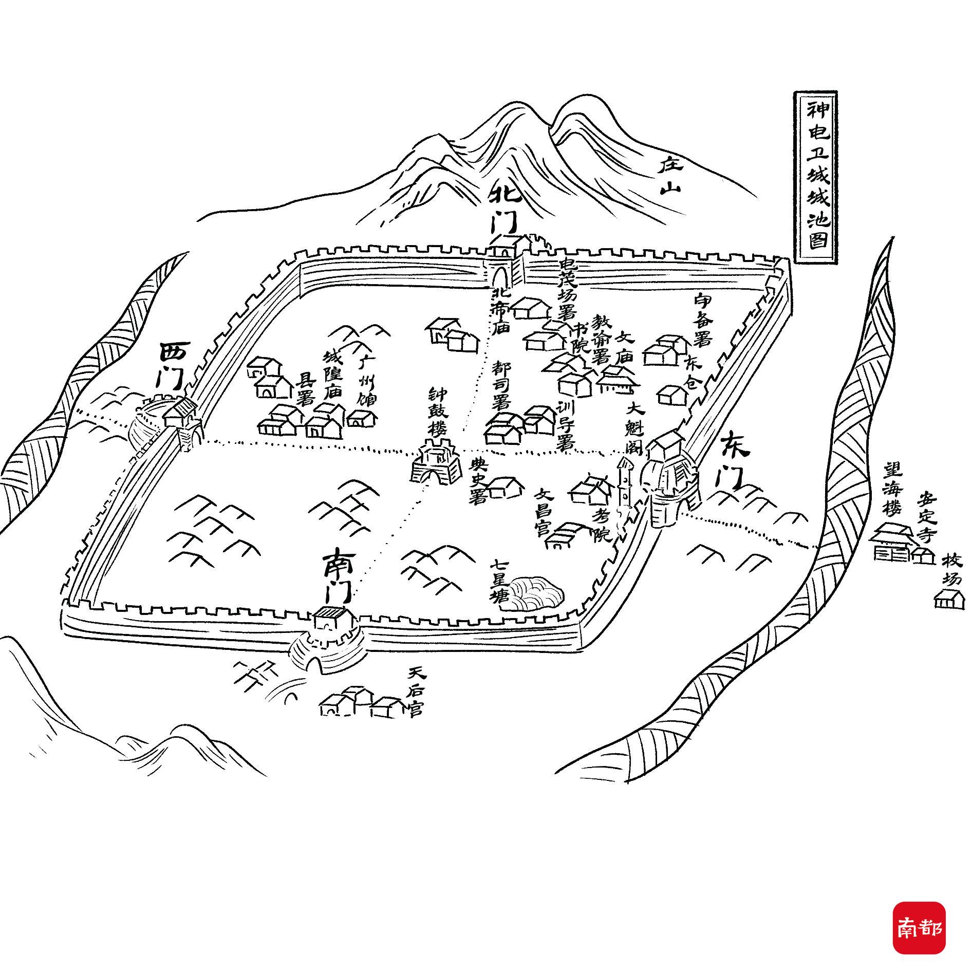 明代三大才子之一解缙在永乐年间奉旨督饷化州时曾作过一首七绝,诗曰:“石龙江上水云腥,巨浸东南合四溟。神电卫城何处是?半边山色一痕青。”大才子在诗中对于神电卫城胜景的描写,让人对这座岭南边陲古城充满了期待。